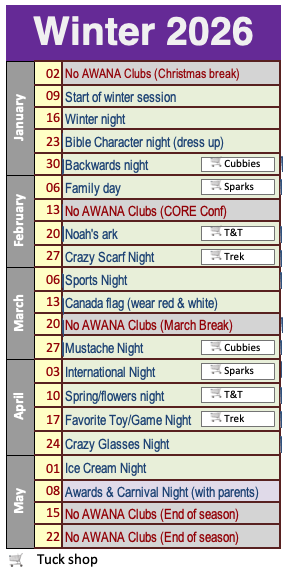 All children are welcome to join our Awana clubs regardless of their background. Awana clubs meet on Fridays at 6:30 pm (till 8:30pm).